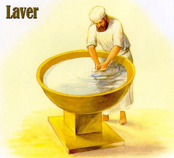 After the sacrifice, priests washed at the laver before entering the Holy Place. It symbolizes cleansing by the Word.