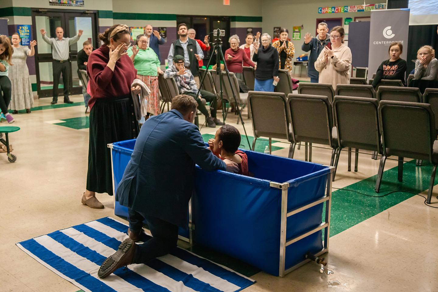 She later told me she wanted to be baptized in the name of the Lord Jesus. So we made it happen—right there in a portable baptismal tank, set up in the elementary school where we were holding church services.